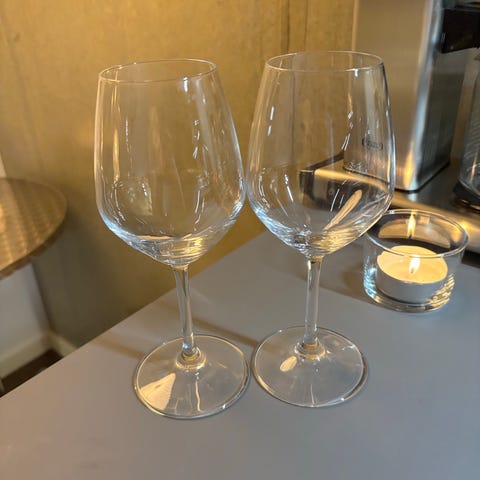 Følgende: Ølglas 1 stk. Rødvinsglas 5 stk. Hvidvinsglas 15 stk.