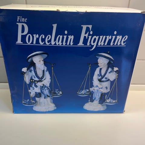 Rigtigt fine porcelænsfigurer af kinesisk fiskerpar. Flotte detaljer. Ca 20 cm høje.