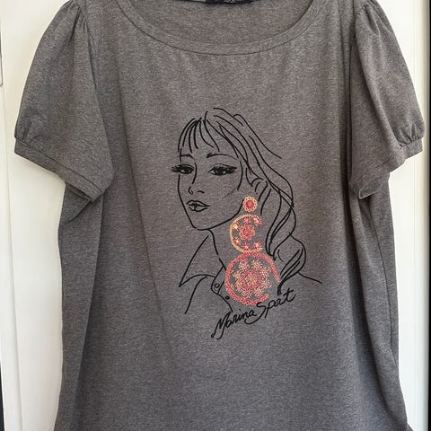 Super flot og festlig t-shirt med palietter til curvy Ladies. Lækker kvalitet. Kan købes på fx Ellos, Venus & Mars og Zalando. God længde så man ikke skiller ved maven og bag på ryggen.