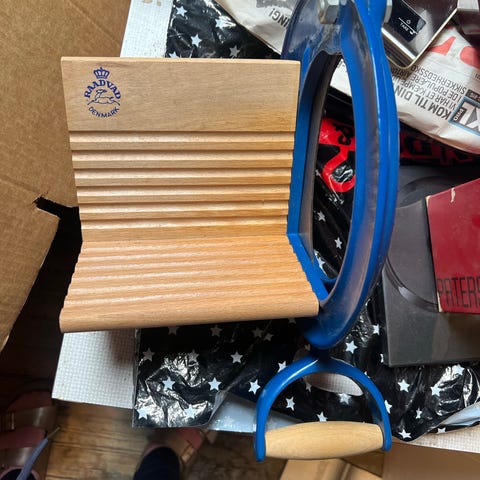 Brødskærer, Raadvad, Brugt cremefarvet Raadvad brødskærer i aldersrelateret stand.
