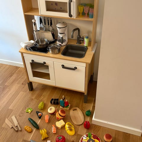 Andet legetøj, Madlavnings sæt til børn, MadLegetøj til børn med 6 forskellige retter salt peber pande paletkniv og mini komfur til batteri prisen kan sættes ned kom og tag det for en 50er