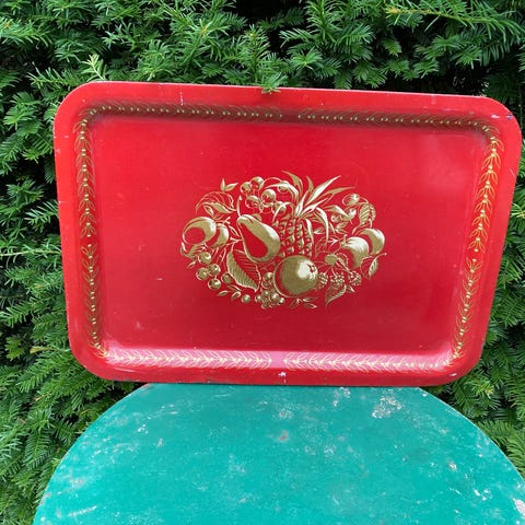 Metalbakke + glasbakker, Metalbakke og 12 coasters. Rød med snemænd.