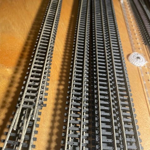 Modeltog, Skala N 1/160 9mm, Skinner og sporskifter, fragt 39kr uanset antal. Se skemaet for antal og pris.