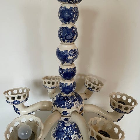 De måler cirka 35-40 cm i højden og alle 5 er med diverse originalt ophæng/kæde, baldakin m.m.