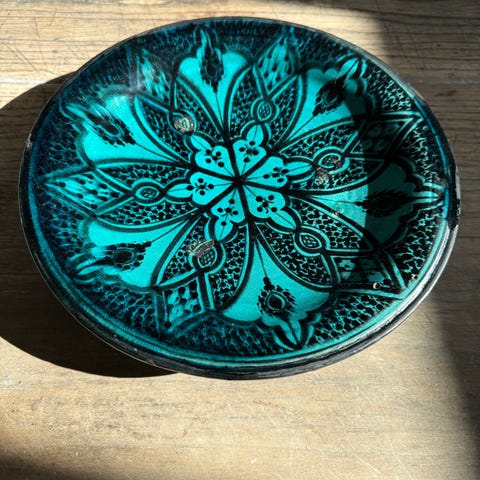 Marrokansk keramik fad , Keramik, Marrokansk fad / brugskunst. Tåler madvarer. Top stand. Kan bruges til væg dekoration. Huller til snor. Unikt og smukt. Ø 42 cm H:7cm