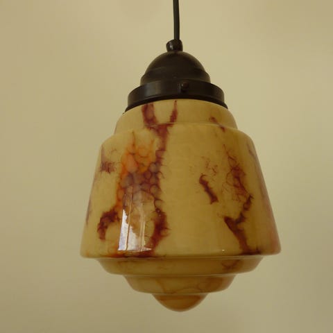 Ampel, Vintage Art Deco, Vildeste matteret glaskuppel/ plafondskærm, formentlig mere end 100 år gammel. Rengjort og klar til at kaste glans over ethvert hjem. Man kan evt få lavet et ophæng eller som her sætte den med lyskilde på bord/gulv.