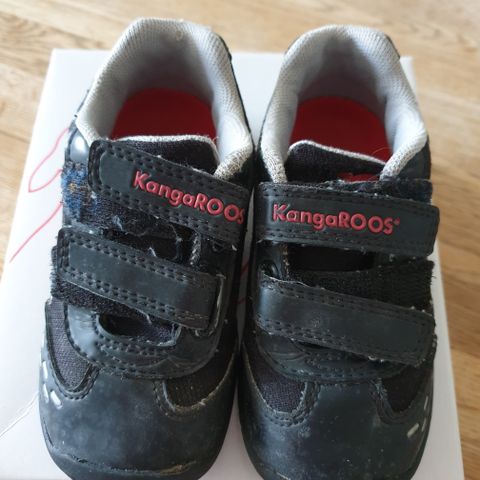 Fine blinke sko fra kangaroos i str. 27. De er brugt, men lys virker stadig i begge. Dog er noget af det lilla slidt af på indersiden af skoene. Indersål måler cirka 18 cm.