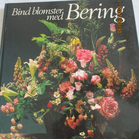 "Buketter og dekorationer er skabt af den kendte blomsterdekoratør Erik Bering. Materialerne er friske og tørrede blomster. Med anvendelse af forskelligt utraditionelt plante materiale i overraskende sammensætninger præsenteres forskelligartede dekorationer af overvældende frodighed og enkelhed. Der fortælles kort og letfatteligt om arbejdsmetoder, redskaber og principper for dekorationens kunst. At det kan udvikles til en kunst, vidner de mange farvefotos om. Et afsnit omhandler tørring af blomster, præparering med voks, glycerin og sandtørring af bl.a. roser og pæoner. Emnerne er buketter, dekorationer, kranse, guirlander, træer i potter, borddekorationer samt dekorationer til jul og påske. I de seneste år er der kommet en del bøger om emnet. Men Erik Berings dekorationer og buketter udtrykker en meget personlig, elegant stil. En udfordring for enhver ambitiøs blomsterentusiast".