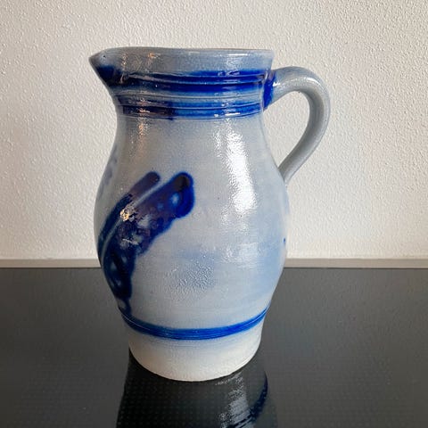 Måler ca 21 cm i højden og 10 cm i diameter målt øverst (uden hældetuden).