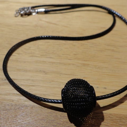Halskæde, Sort halsbånd med vedhæng. Lilla / sølv kugle.