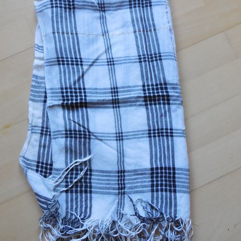 Ukendt mærke let tørklæde med marmorlook i gul og grøn. 190x100 cm. Ukendt materiale. Stoffet er meget tyndt, så der kommer nemt sammentrækninger i trådene.