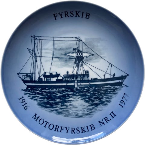 Bing & Grøndahl udgave gennem en årrække en række fine blå platter med danske skibe gennem tiderne - kaldet Skibsplatterne.