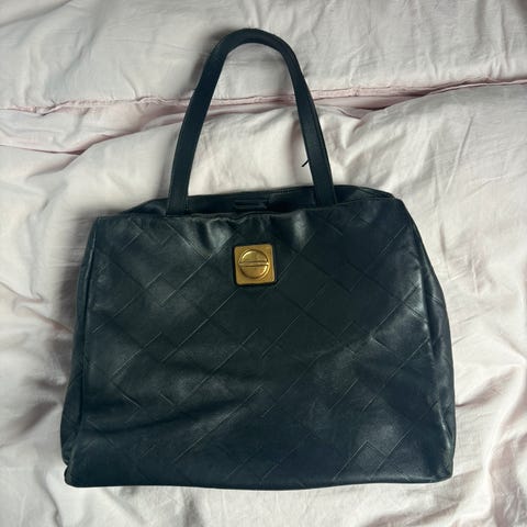 Skuldertaske, Marc Jacobs, Skindtaske fra Marc Jacobs med 3 rum. Pladen med logo på forsiden af tasken mangler og lidt trådudtræk på den ene hank. Brugt men stadig fin og Ingen huller.