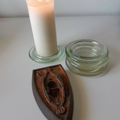 Beholderen er bulet i bunden, så den står ikke helt plant. For øvrig stand se fotos.