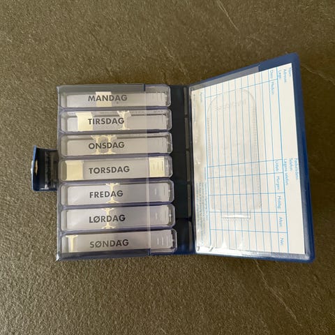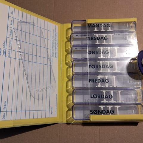Andet, Medidos, Ny og ubrugt ugedoseringsæske til piller med medicinkort.