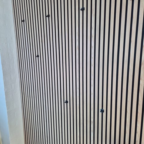 Arkustik panel, Nye paneler i ask 300cm lange og 60,5cm brede. Der er 40 stk. 300kr pr stk