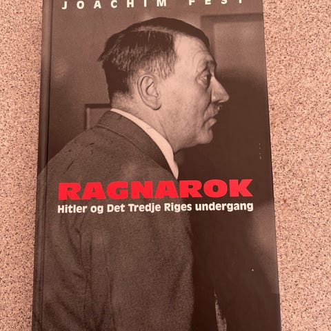 Ragnarok, Joachim Fest, emne: historie og samfund, En beretning om Det Tredje Riges sidste dage, time for time, fra de russiske generaler begyndte deres sidste og afgørende offensiv mod Berlin i begyndelsen af april 1945 til Hitlers selvmord i Førerbunkeren den 30. april, med russiske soldater inden for skudvidde. Joachim Fest beskriver en af historiens største nedslagtninger, hvor millioner af mennesker blev dræbt og slået på flugt, da Hitler nedkaldte ragnarok over Tyskland. Sideløbende hermed er bogen en biografi i kortform om Hitler - om hans psykologi, politiske og personlige udvikling, ideologiske program og plads i den tyske historie. Illustreret med fotos og kort. Oversat fra tysk efter Der Untergang - Hitler und das Ende des Dritten Reiches af Adam Paulsen"Den tyske historiker Joachim Fests lille bog om de sidste 14 dage af Adolf Hitlers liv skjult i en stadig mere kvælende bunker under Rigskancelliet er en kompakt lille sag, som ny og ulæst