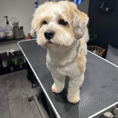 Eddie er 5 kg ren kærlighed og ca 27cm høj, hun hunden må ikke være meget højere da det er for hårdt for ham.