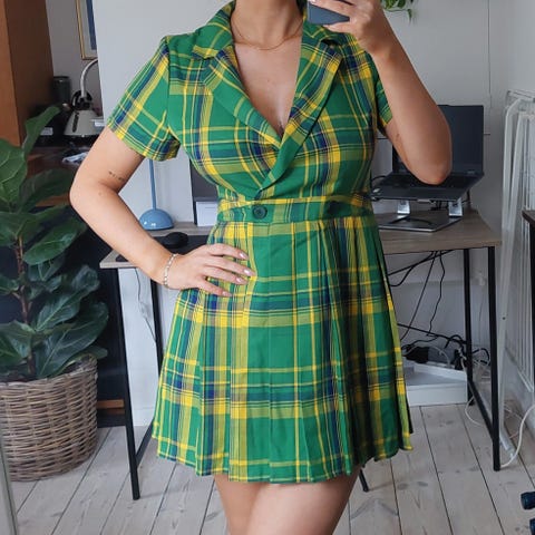 Festkjole, Collusion, str. S, Grøn, Næsten som ny, Grøn kjole i flot ternet stof fra Collusion