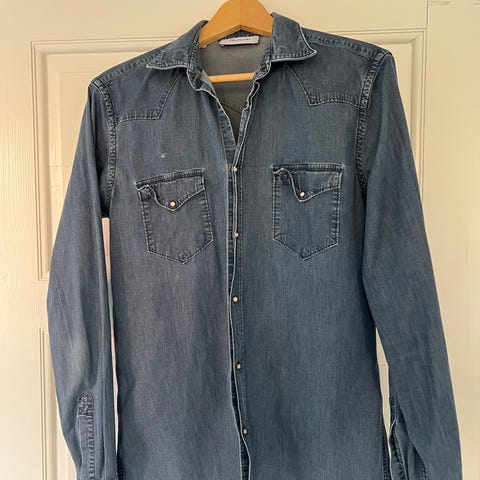 Skjorte, Aglini, str. XL, lyseblå, bomuld, Ubrugt, str. 43, lyseblå med blå striber og dødningehoveder. Italiensk luksus til casual brug. Køb 3 skjorter fra mine annoncer og få den billigste gratis.