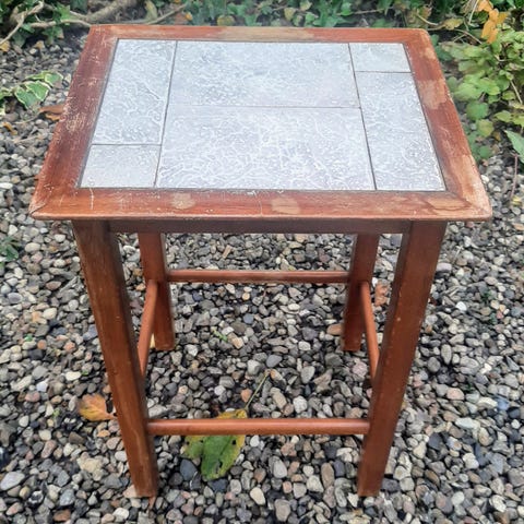 Lille bord, træ/kakler, Fint lille bord i mahogni og bordplade med blomsterkakler sælges.