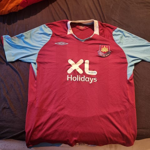 Fodboldtrøje, West Han fodboldtrøje , Macron, str. XL, West Ham fodboldtrøje fra Macron. Fitter Large / XL. Mål er 56 bred (armhule) 74 lang.