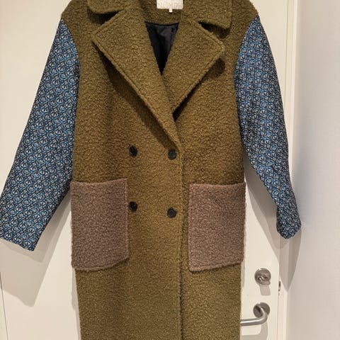 Frakke, str. 38, NafNaf, Sort, 51% Uld, 49% Bomuld, God men brugt, Mangler bælte og 1 knap.