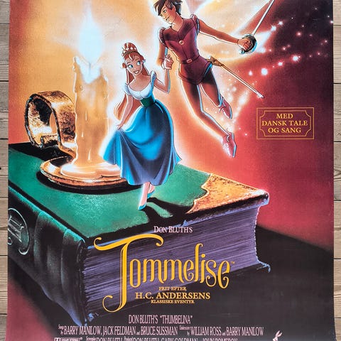 Original dansk filmplakat for animationsfilmen “Tommelise” baseret på H.C. Andersens klassiske eventyr og instrueret af Don Bluth. Plakaten har et farverigt og eventyrligt design, der gør den perfekt som samlerobjekt eller vægdekoration til børneværelset.