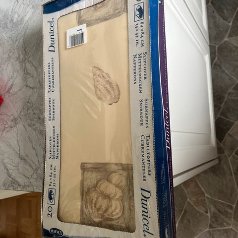 Bordduge, gulvtæppeunderlag, Jeg har disse fine og helt nye duge, jeg aldrig har fået brugt eller pakket ud.