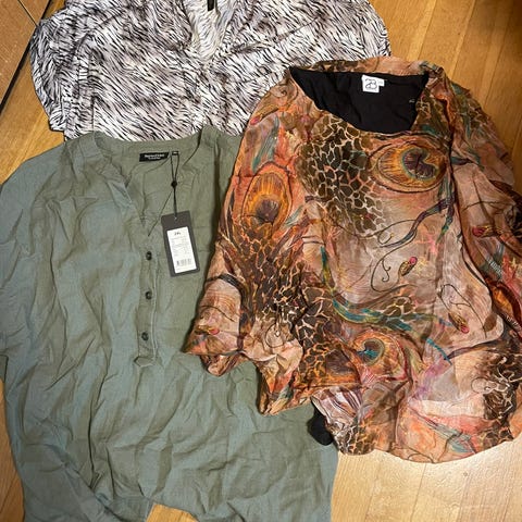 Andet, Flere, str. findes i flere str., Næsten som ny, Blandet tøj, bluser, veste, mange, str. M, L, 46-48, XL, XXL, flere, Næsten som ny