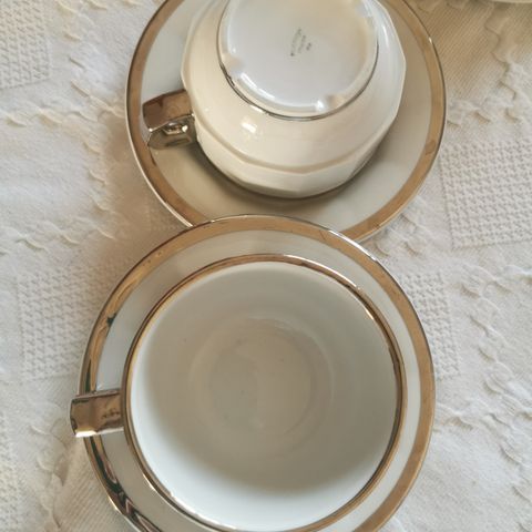 Porcelæn, Tekop kaffekop Tekande tallerken flødekande opsats, Pillivuyt grøn med guldkant, Pillivuyt