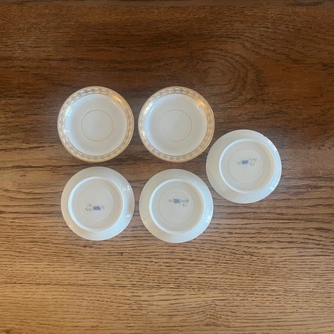 2 stk underkopper, 11,5 cm i diameter. Nr. 11-3100. Den ene har 2 små afslag på bagsiden, se foto. Stel ukendt.