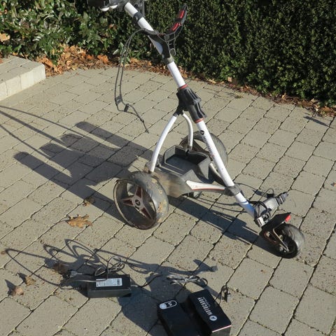 Golfvogn, Wishbone NEO-trolley, Lækker velkørende elvogn med trinløs hastighed og autocontrol af fart. Meget nem at køre da den vejer under 10 kg. Hvis uheldet er ude og der ikke er mere strøm kan trækket slåes fra så den kører som almindelig vogn. Meget nem at folde sammen. Der medfølger kopholder-scorekortholder og paraplyholder og sevfølgellig lader. Har aldrig været brugt og der er et års garanti på vognen. Den elektriske Wishbone NEO-trolley fra Score Industries vejer kun 8,9 kg inklusive ramme, hjul og batteri, hvilket gør den til en af de letteste trolleys på markedet. Ligesom den manuelle Wishbone One-vogn kan NEO samles og skilles ad i et par enkle trin og gemmes væk for at spare plads. Hastigheden kan indstilles mellem 0 og 7 km/t ved hjælp af tommelfingerens hastighedskontrol. Den bløde startfunktion forhindrer, at vognen tager fart i ryk. Cross Control-funktionen kan også bruges, især på lange lige strækninger, som en slags fartpilot, der gør det muligt for vognen at holde sin egen hastighed. På den måde kan man slentre af sted i et afslappet tempo uden hele tiden at skulle skubbe vognen. Batteriet holder til mere end 18 huller, når det er fuldt opladet, men hvis det mod forventning skulle løbe tør for strøm, kan hjulene skiftes til frihjulsfunktion i to nemme trin. Mål åbnet: 57 x 94 x 102 cm Sammenfoldede mål: 56 x 80 x 19 cm Vægt af ramme: 6,5 kg Vægt bat
