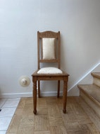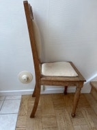 Spisebordsstol, Sandblæst egetræ, Sandblæst spisebordsstol i egetræ. Stolen er samlet med lang bolt under sæddet og derfor stabil at sidde på.