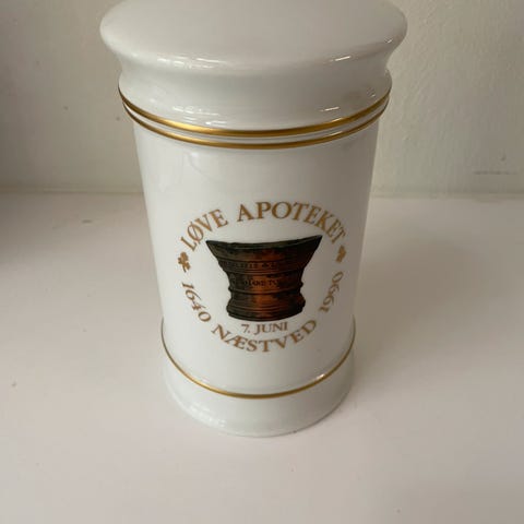 Porcelæn, Apoteker krukke, Royal copenhagen, Apoteker krukke med guldkant og grøn stribe