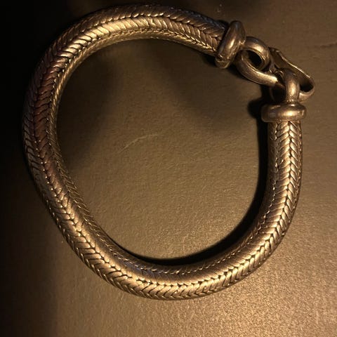 Armlænke, sølv, Oseberg stil, Smuk 5 leds armlænke i Oseberg stil. Ca. 17,5 cm lang, Brugt, ultralyd renset og polleret så det fremstår flot. 35,86g 925 sterling sølv.