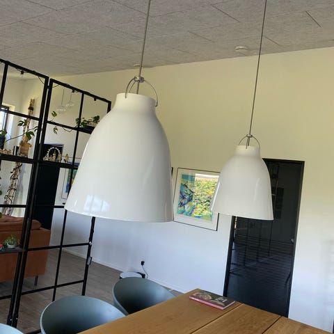 Pendel, Fritz Hansen , Caravaggio P3, Sort lakeret aluminium og rød stofledning.
