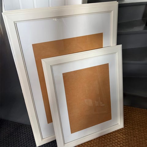 2 stk hvidmalede trærammer fra IKEA, Billedrammer med glas, som ikke laves længere, fra IKEA.