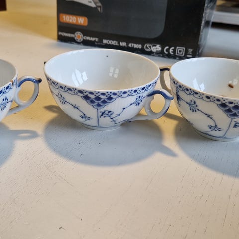 Porcelæn, Kop, Royal Copenhagen, Musselmalet Riflet boullionkop