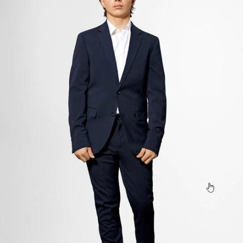 Jakkesæt, Lindbergh, str. 40, Elegant navy jakkesæt til konfirmanden, som endnu ikke er skudt voldsomt i vejret.
