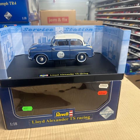Modelbil, Lloyd Alexander 75 1/18, skala 1:18, I original æske - stadig med transportsikringer! En rigtig flot og meget detaljeret modelbil i 1/18. Den mangler rat og så har den knækker blinklyset bagpå. Fed model med mange detaljer. Åben model. Produceret i god kvalitet af Revell