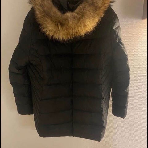 Vinterjakke, str. 44, Danwear, Sort, Næsten som ny, Lækker vinterdunjakke med aftagelig hætte og pelskant. Kan lynes både fra oven og fra neden. lomme med lynlås i hver side, samt inderlomme. Kun brugt få gange. I perfekt stand