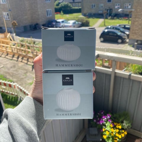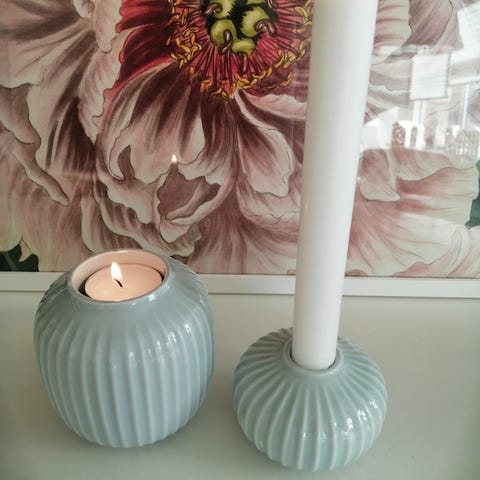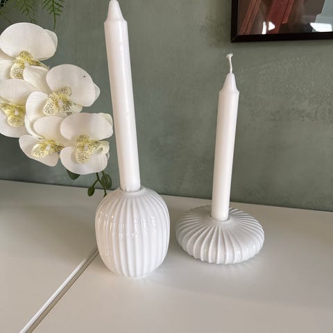 lysestager, Hammershøi, Sælger 2 hvide lysestager af mærket Hammershøi fra Kahler. De er designet af Hans-Christian Bauer. De er 4 cm høje og 12 cm i bredde. Brugt et par gange.