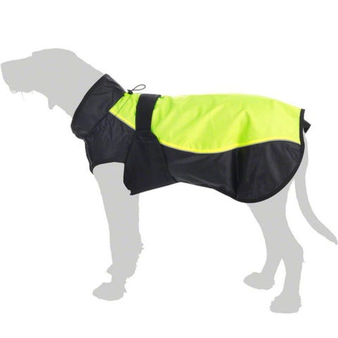 Hundebeklædning, Hunde regnjakke Illume Nite, Str. ca. 45 cm ryglængde. Vind- og regnbeskyttelse af neonfarvet stof med refleks-striber, så din hund kan ses i mørke. Helt ny og ubrugt, fejlkøb for stor størrelse til min hund. Nypris 112,90 kr.