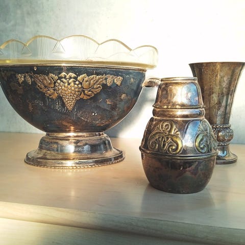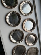 Sølvtøj, Glasbrik / coaster, 12stk. Tror det er sølvplet. Diameter 9cm