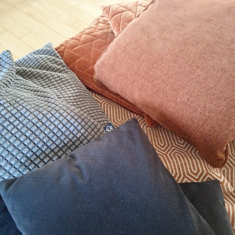 puder til betræk, 9 stk puder i str 40x40 cm, uden betræk.