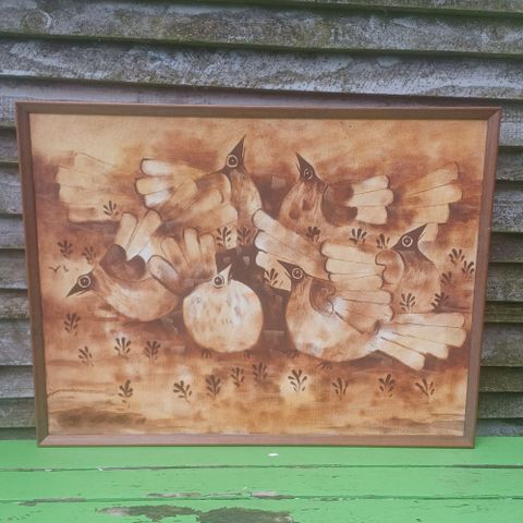 Maleri, motiv: Fugl, b: 30 h: 100, Billede af pelikaner ? Fugle