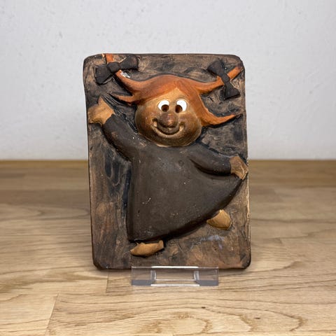 Relief, Henning Knudsen, motiv: Tre røvere fra Rold, 11x13,5cm keramik. (2509)