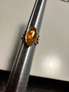 Fingerring, sølv, Ukendt, Fin fingerring med gul rav - jeg er usikker på om det er rigtig rav