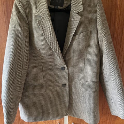 Blazer, str. 38, Zara, Rød, hvid, sort ternet, Næsten som ny, Blazer - cardigan i hvid, rød og sort. Zara Basic Collection størrelse M.